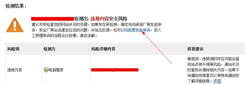 若您发现自己的网站被误报,请优先向误报厂商发起申诉,安全厂商会迅速定位您的问题,并给出反馈。也可以向百度发起申诉,但人工受理申诉的流程会比较慢,请您谅解。