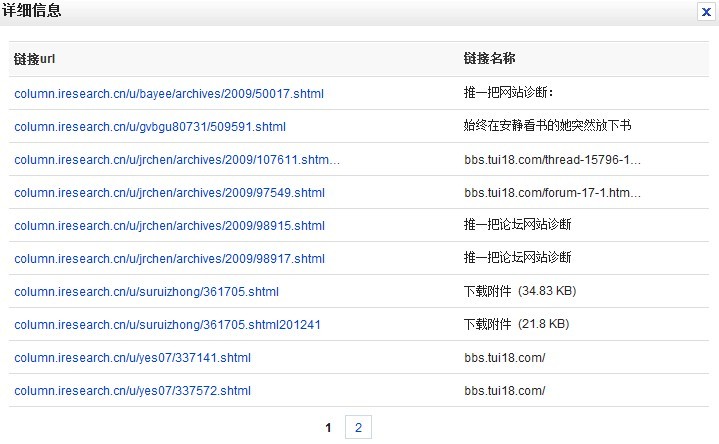 测试版外链数量和被链接数量都只提供2页的数据,不完全。