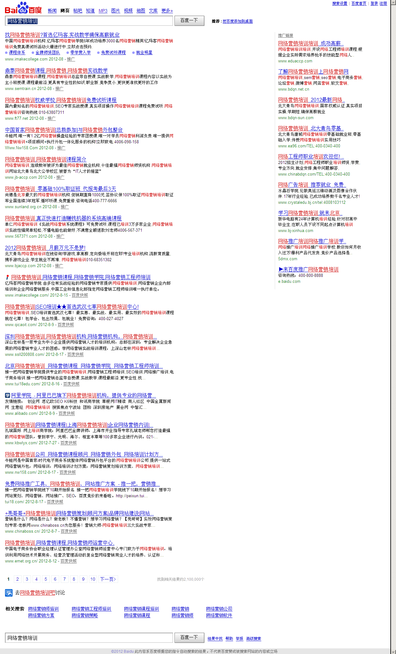 下图为在百度中搜索“网络推广”一词的搜索结果页