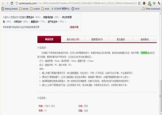 从右侧滑动条位置可以知道,产品属性后面内容还多着呢。再来看看这个页面的百度快照: