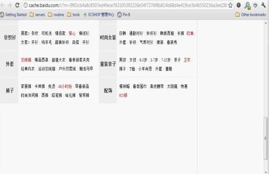 热门分类内容显示了一半,后面没了,显然百度并没有索引整个页面,只索引了前半部分。也许是文件太大了?也许前半部分都是链接,百度觉得没有实质内容?一般这种情况下代码需要精简是肯定的,像图中这个页面,光导航就100多K,真的有必要把导航做成这么庞大吗?