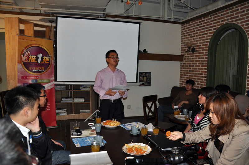 4月21日下午2点,推一把内部主题沙龙《网络营销决战电子商务ROI》,在bei/jing朝阳区嘉时客咖啡厅隆重举行!齐聚了互联网精英和求知若渴的学者们。最令我感动的是刘大姐,其实我应该叫她阿姨,让我看到50年代人的优秀和坚韧不拔!她是我们13期推一把学院线上远程班的学员!起初什么都不会,到现在已经对互联网有颇深的研究了,更是专程为了这次主题沙龙从陕西西安坐了一夜火车赶来。会前1小时就早早的到了现场。另外还有3位同学也是从外地专门开车或坐车赶来。还有所有昨天赶到现场参加沙龙聚会的朋友及我们的重要嘉宾,对此我谨代表推一把全体同仁感谢大家的到来!