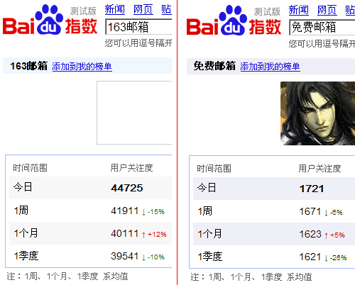 以下是用百度指数搜索“免费邮箱”和“163邮箱”得到的数据: