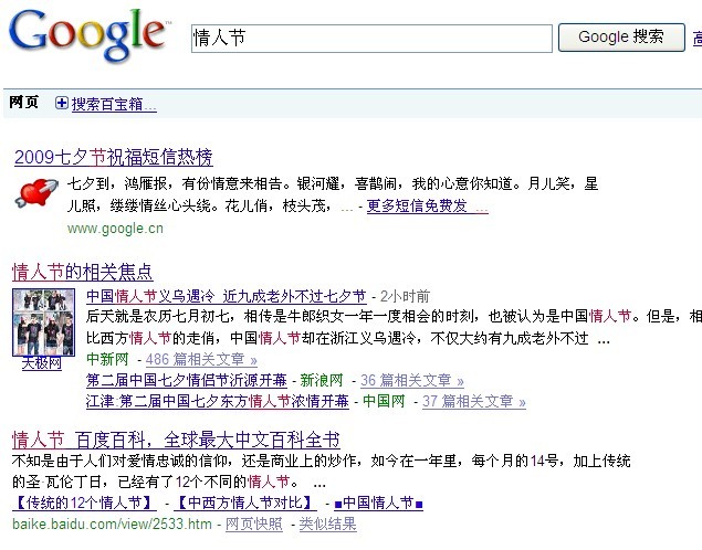 情人节谷歌与百度谁与争锋