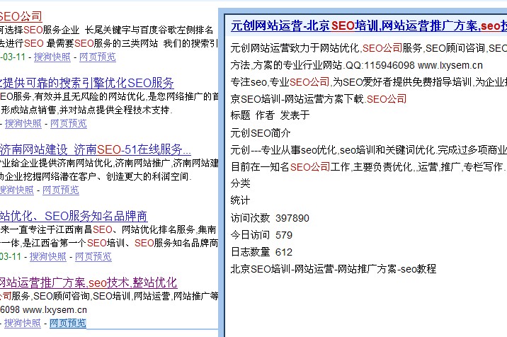 最近几天发现搜狗快照多了个,快照预览,这个挺方便,但用户点击预览后,可能就不会点击进入网站了