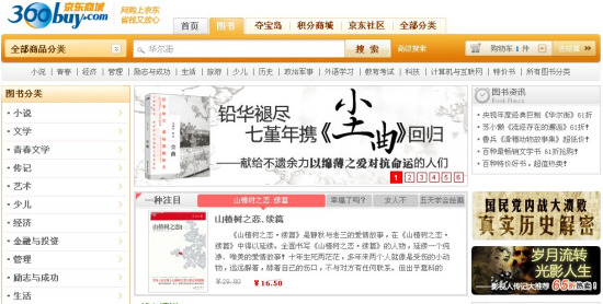 新浪科技讯 11月1日上午消息,京东网上商城已经开始了图书商品的布局。今日,京东图书频道悄然上线,与手机数码、电脑办公商品等并列于京东产品大分类。新浪科技从京东网上商城内部获悉,该公司已经为图书布局良久,随着今日的上线,将会向当当、卓越的霸主发起挑战。