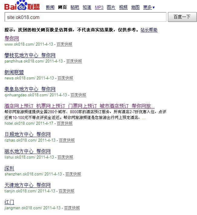 在百度中 site:ok018.com 如图: