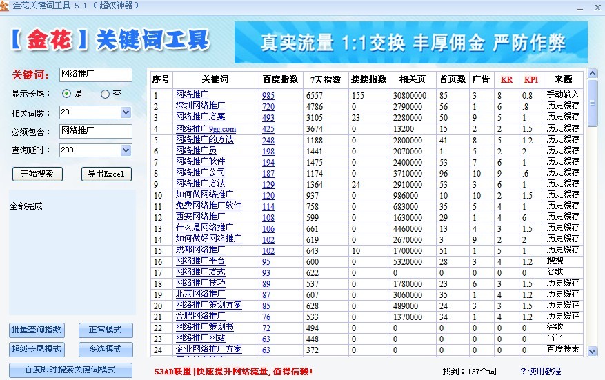 13、超级长尾模式:本功能主要用于查询大量长尾关键词,最大支持50万。数据越多越占CPU和内存。