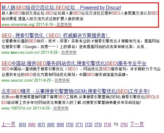 昨天看到百度统计,有朋友搜索SEO进入我的博客,我一搜原来在百度倒数第二页,在仔细一看其他网站都是之前在首页或者第二页排名过得一些SEO网站。