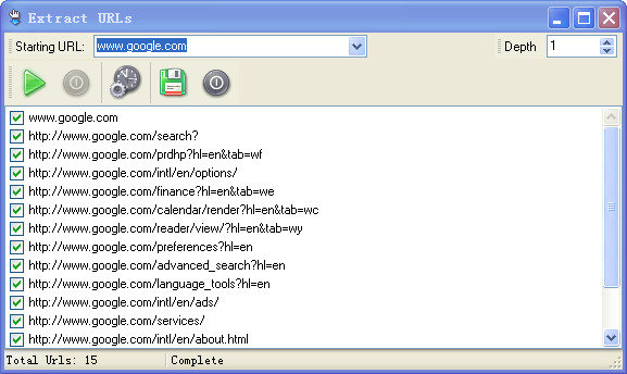 在“Starting URL”输入框中输入你想查询的网站,在“Depth”中输入你想扫描的链接深度。点开始“>”扫描网址。