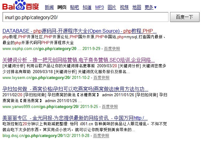 然后会得到相关的关键字:inurl: (go.php/category/20/)
