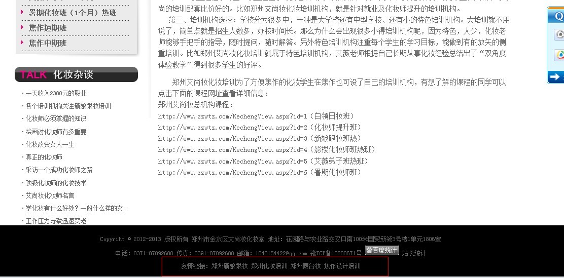 郑州化妆学校网站SEO分析