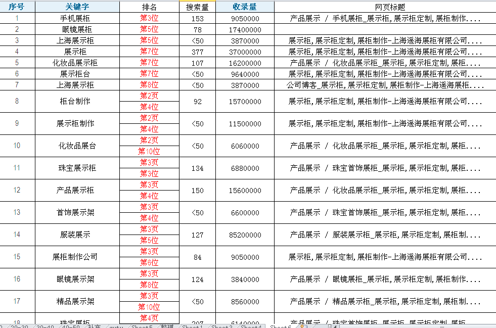 如图这个站,展示柜企业,一些词优化到了百度首页,但还有栏目页很多词在百度2-5页面,想要使这些词排名提升,就需要继续对这些页面进行优化,主要方法是内容和内链。