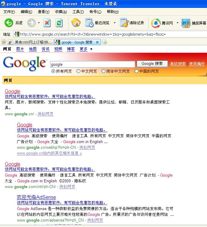 刚才突然用GOOGLE搜素打开网站全部是 :该网站可能含有恶意软件,有可能会危害您的电脑。